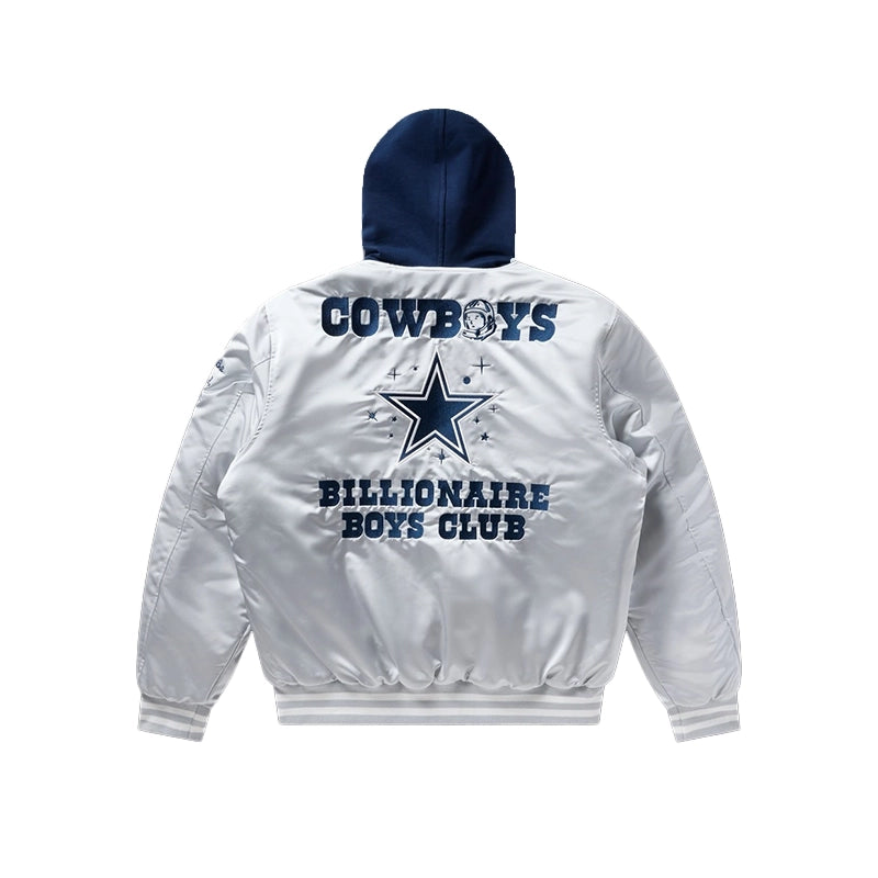 Billionaire Boys Club x Dallas Cowboys 2025 Satin Hooded Bomber Grey Jacket